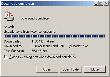 - Se você selecionar o campo Close this dialog box when download completes, essa janela não é mais apresentada quando as transferências forem concluídas.